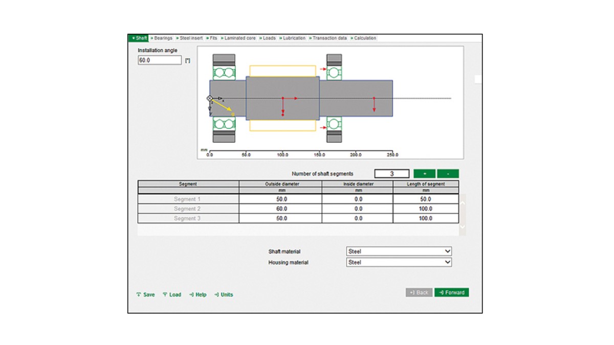 เมนูที่ใช้งานง่ายของโปรแกรมจะแนะนำคุณในแต่ละขั้นตอนของกระบวนการคำนวณและข้อมูลที่คุณป้อนจะแสดงเป็นภาพสำหรับการตรวจสอบ ประการสุดท้าย ตลับลูกปืน (ซึ่งเป็นแกนกลางของเครื่อง) สามารถคำนวณได้หลากหลายรูปแบบและข้อมูลสำหรับตลับลูกปืนINA และ FAG จะโหลดได้อย่างสะดวกจากฐานข้อมูลในตัว ข้อมูลอินพุตทั้งหมดสามารถบันทึกไว้ในเครื่องได้ นอกจากนี้ผลลัพธ์โดยละเอียดและข้อมูลอินพุตทั้งหมดจะถูกจัดทำเป็นเอกสารในไฟล์ PDF