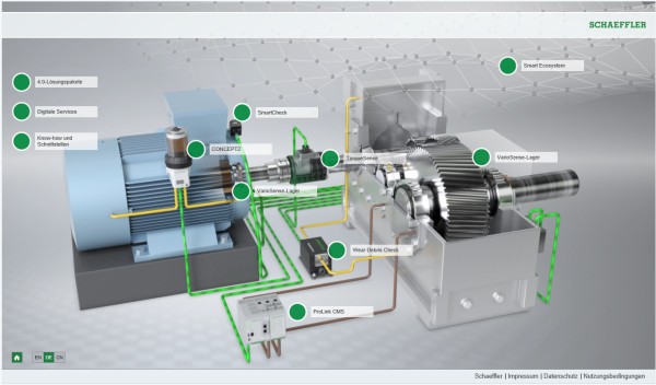 ระบบและส่วนประกอบของเราได้รับการติดตั้งในเครื่องจักรตรงจุดที่สามารถรับข้อมูลสำคัญได้ ส่วนประกอบของแชฟฟ์เลอร์ถูกติดตั้งพร้อมกับตัวเซ็นเซอร์อัจฉริยะที่ทำให้เป็นตัวเปิดใช้งานสำหรับ Industry 4.0 ที่สำคัญ ลูกค้าจะได้รับประโยชน์จากความรู้ของแชฟฟ์เลอร์โดยเฉพาะ: โซลูชันการตรวจติดตามสภาพและบริการดิจิทัลบนระบบคลาวด์สำหรับการบำรุงรักษาเชิงป้องกันอย่างต่อเนื่อง ที่จะให้ข้อมูลเกี่ยวกับสภาพของเครื่องจักรและอุปกรณ์ของพวกเขา